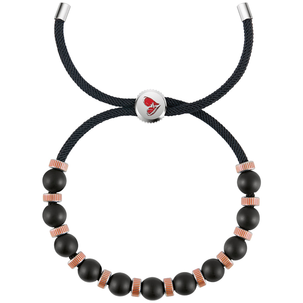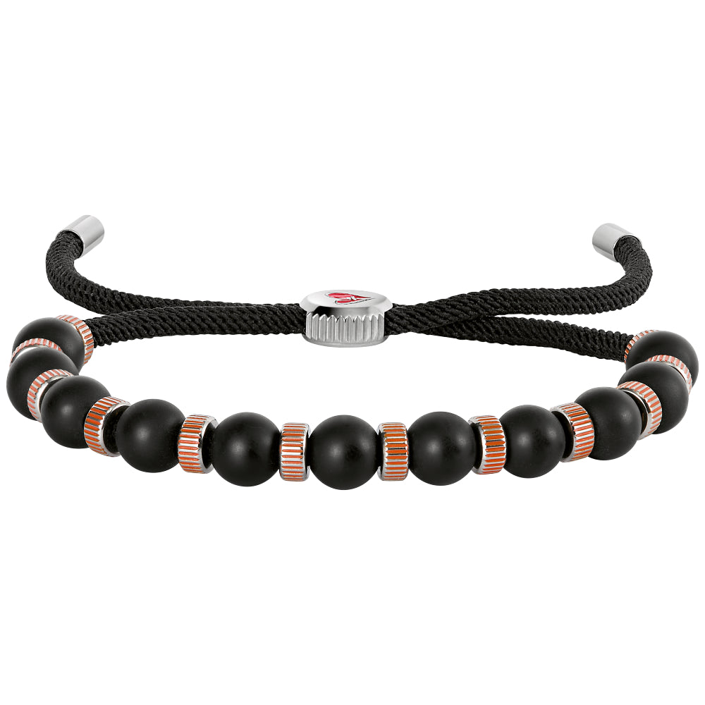Marc Anthony black onyx beaded adjustable bolo bracelet with orange enamel recessed in the rondels