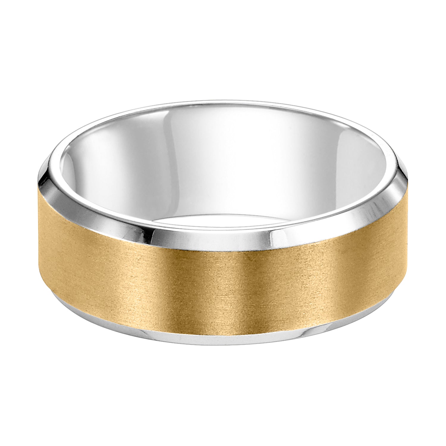 This crisp yet timeless, Comfort Fit wedding features a brushed finish with beveled edge