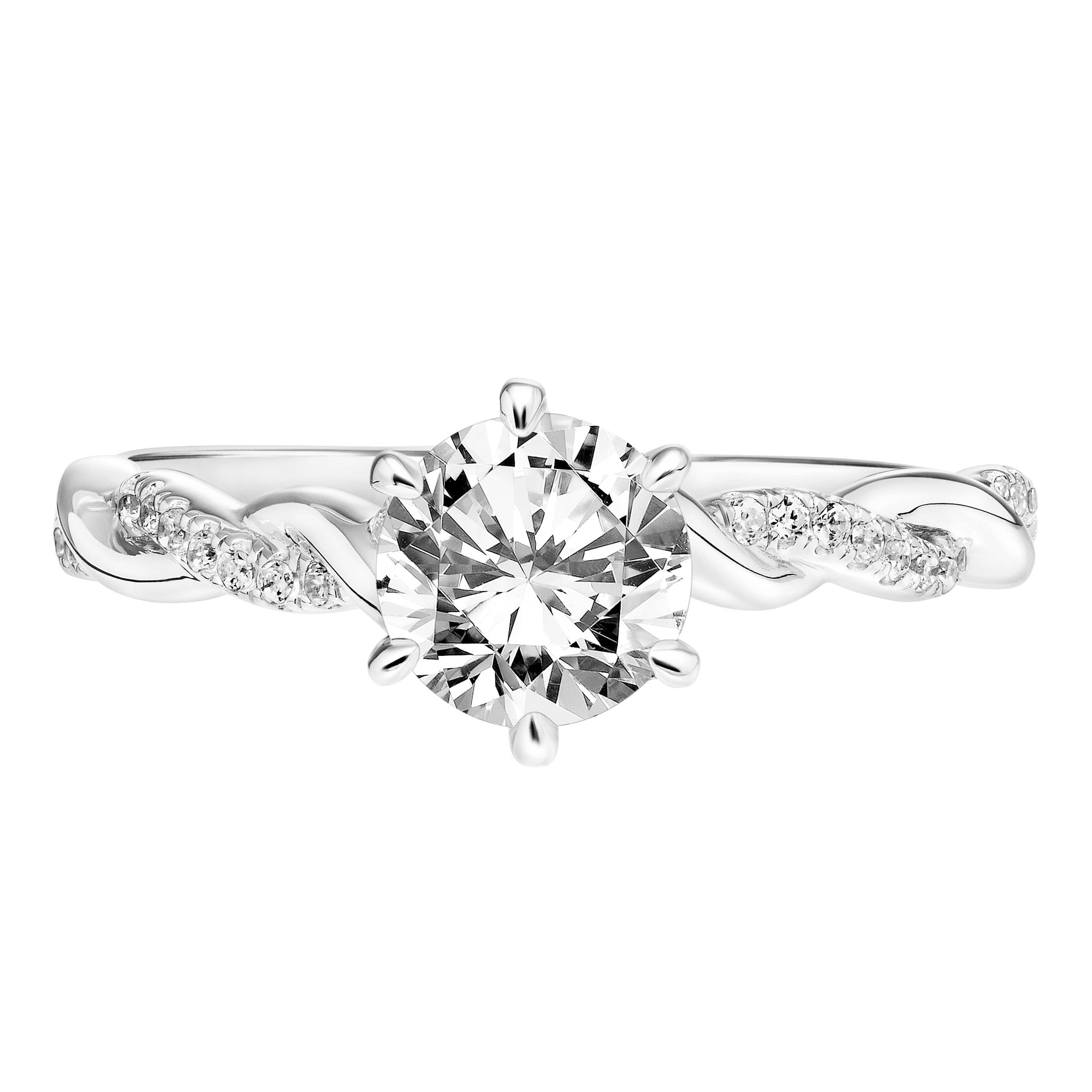 Six Prong Diamond Engagement Ring with Half Diamond  Half Polished Twisted Shank