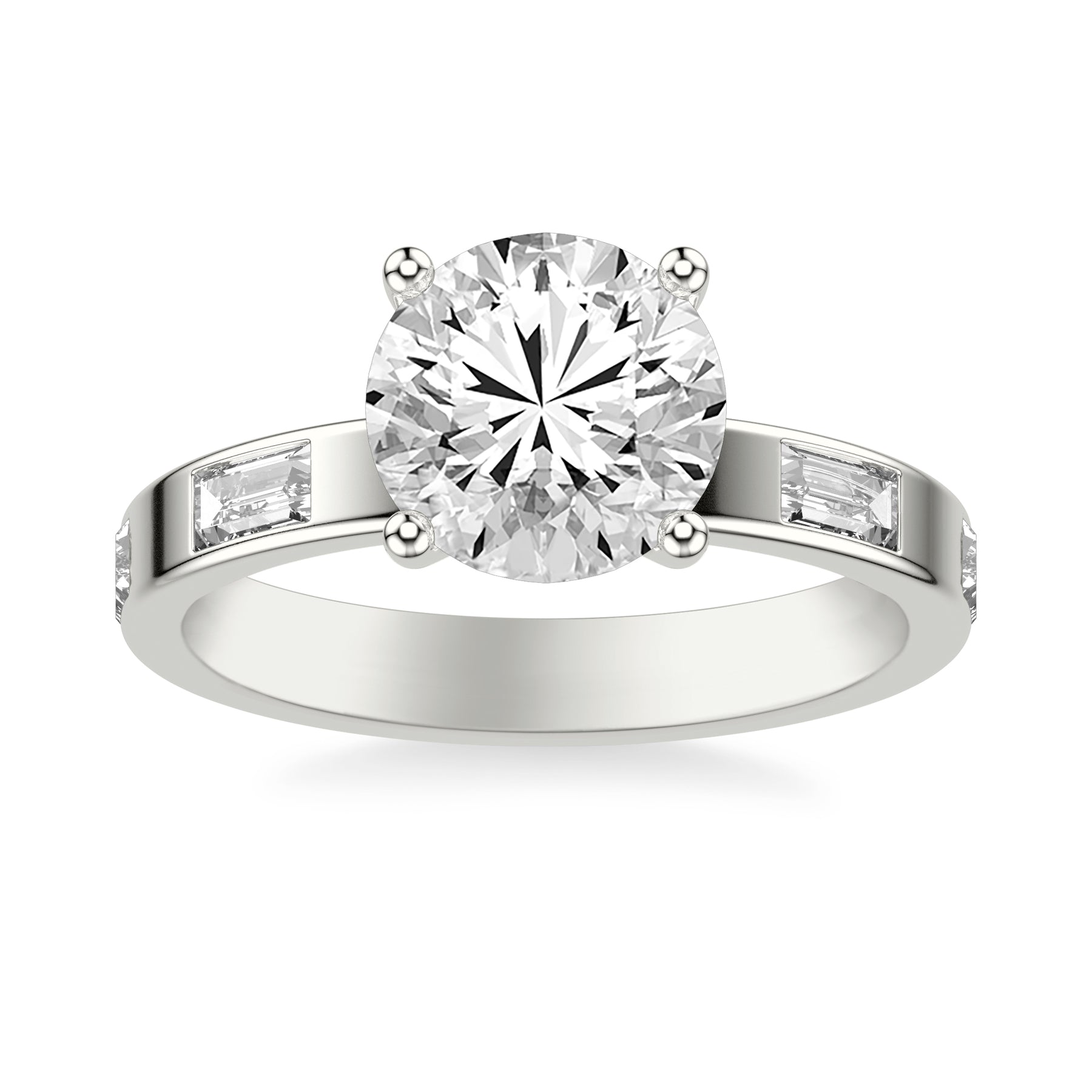 Contemporary Wide Band Engagement Ring with Bezel Set Distance Baguette East/West Diamond Polished Shank