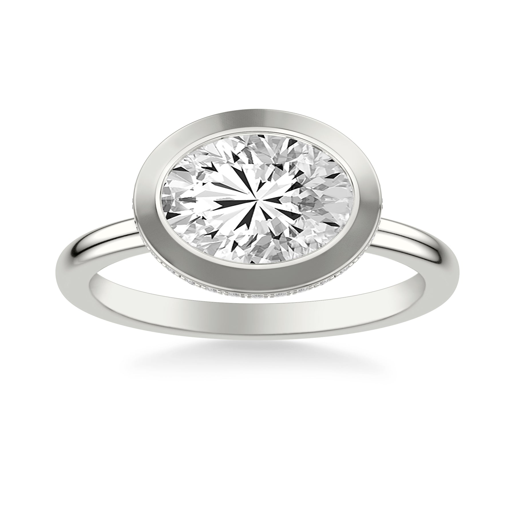Contemporary East-West Bezel Set Engagement Ring with Hidden Halo and Polished Shank