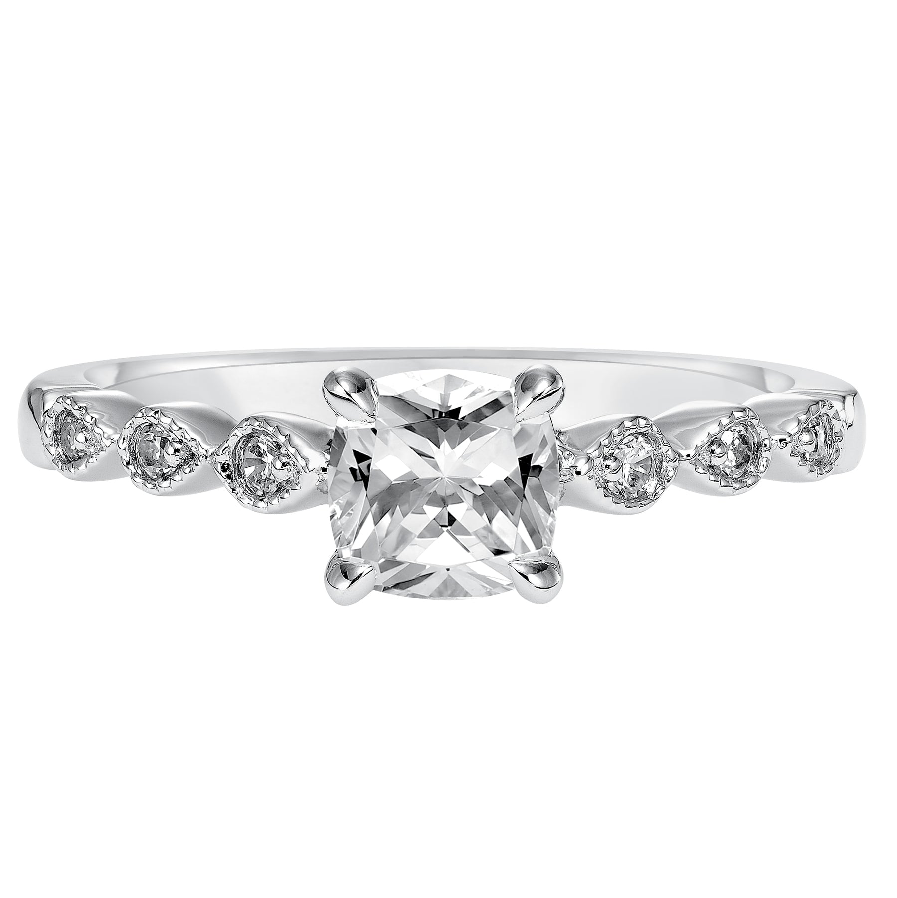Dazzling with its intricately designed diamond band, this engagement ring is distinct yet enchanting
