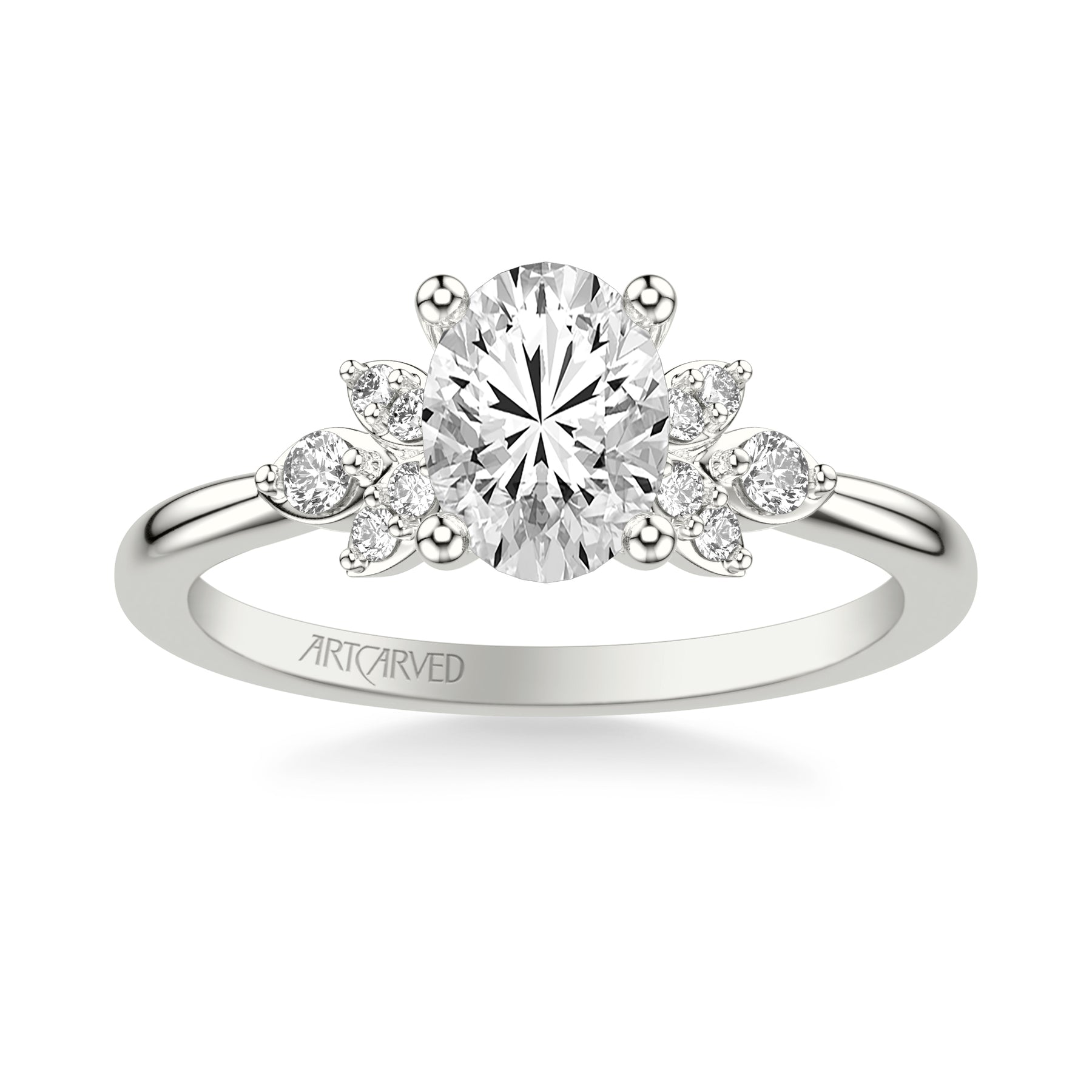 Floral Engagement Ring with Three Diamond Petals and Polished Shank