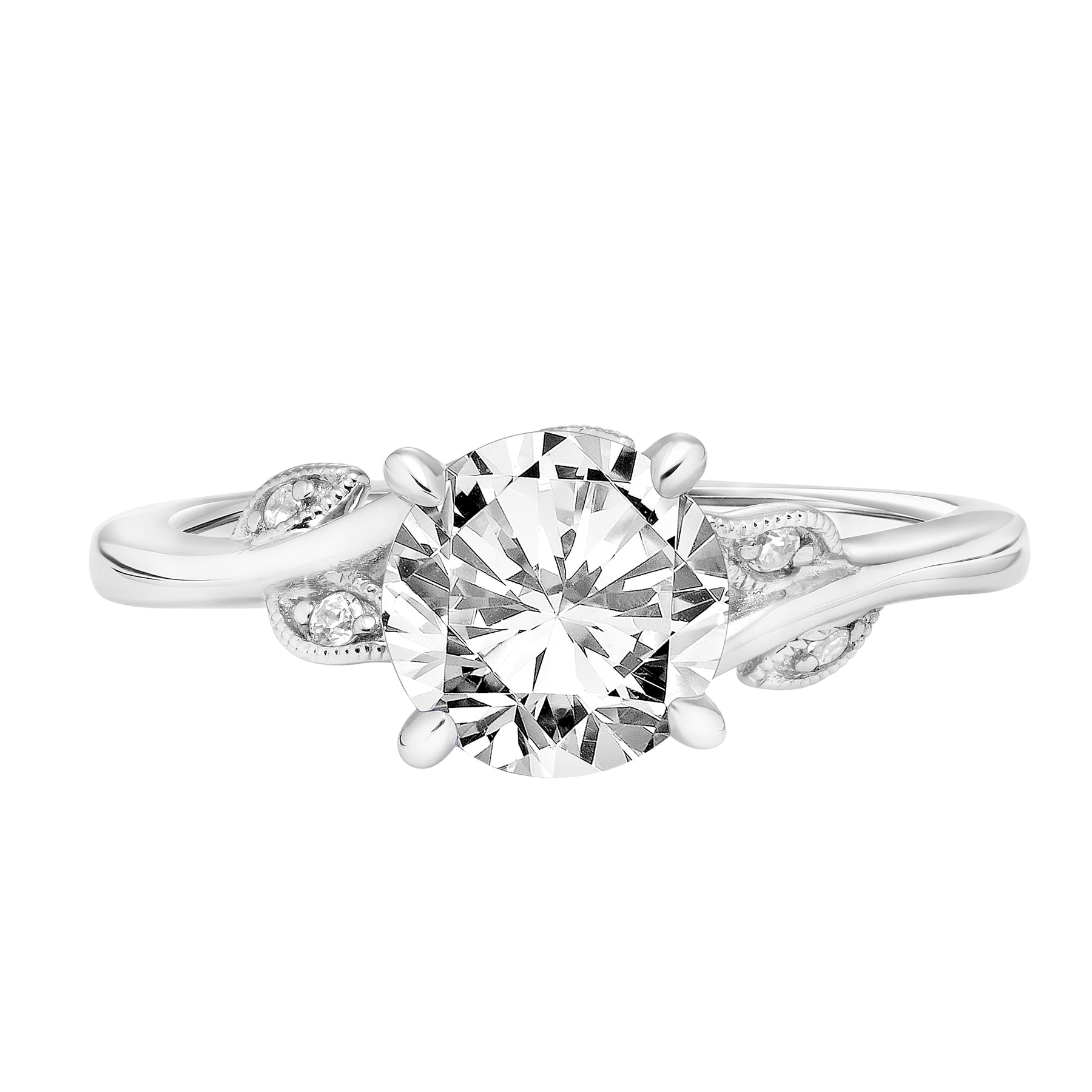 Floral Engagement Ring with Diamond and Milgrain Accented Petal Gallery and Polished Shank