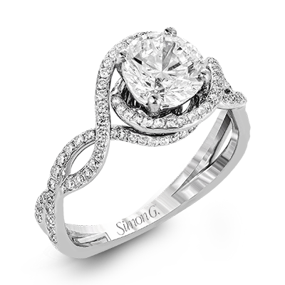 Classic with a modern twist, this white gold engagement ring features .50 ctw of sparkling white diamonds in a dramatic openwork design. Center stone not included. Our rings can be designed to fit any center stone.