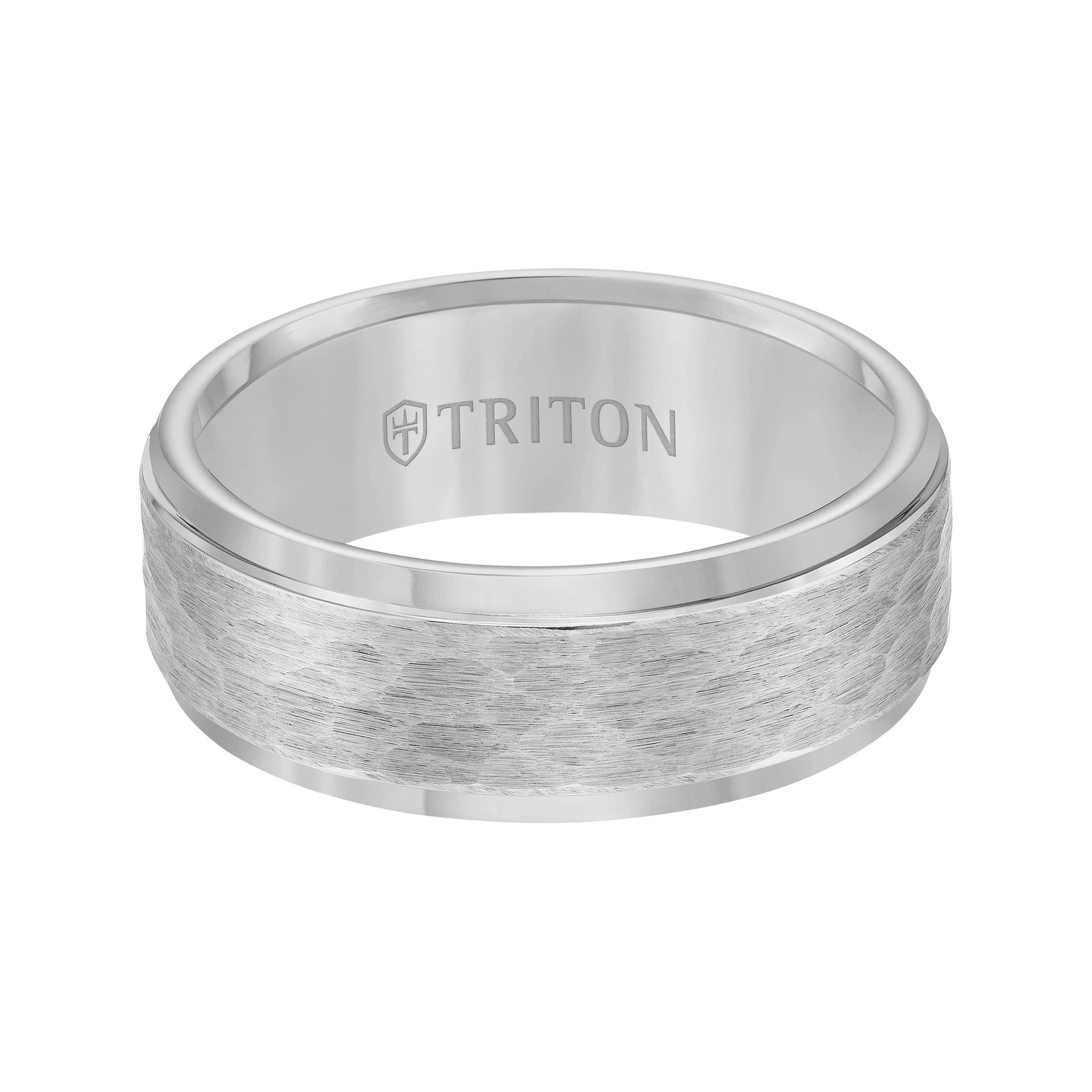 8mm Yellow Tungsten carbide Step Edge Comfort Fit band with center hammered texture
