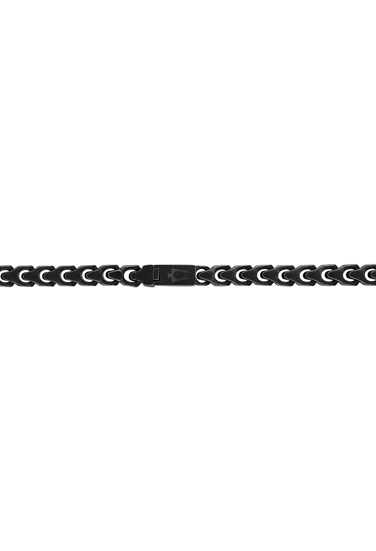 The fresh new Bulova Link™ Collection abounds in both personality and presence as our iconic tuning fork makes its debut as a signature design element. Destined to become a classic, this 8MM black-tone stainless steel necklace in an antiqued finish gives off a more rugged vibe. Measures 24"" in length and features a box lock clasp etched with Bulova's iconic logo.
