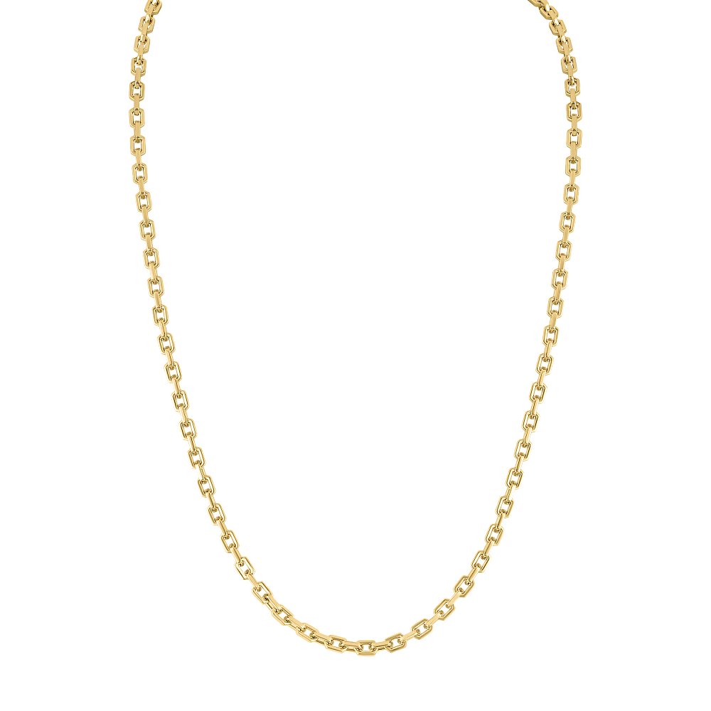 Inspired by Bulova's Icon collection, the links on this polished 5MM gold-tone stainless steel necklace are designed in the shape of an elongated hexagon, the symbol for harmony, structure and balance. Makes a stylish stand-alone piece or perfect for a layered look. Hexagon cable chain measures 24"" in length and features a matte finish box clasp etched with Bulova's iconic tuning fork logo.