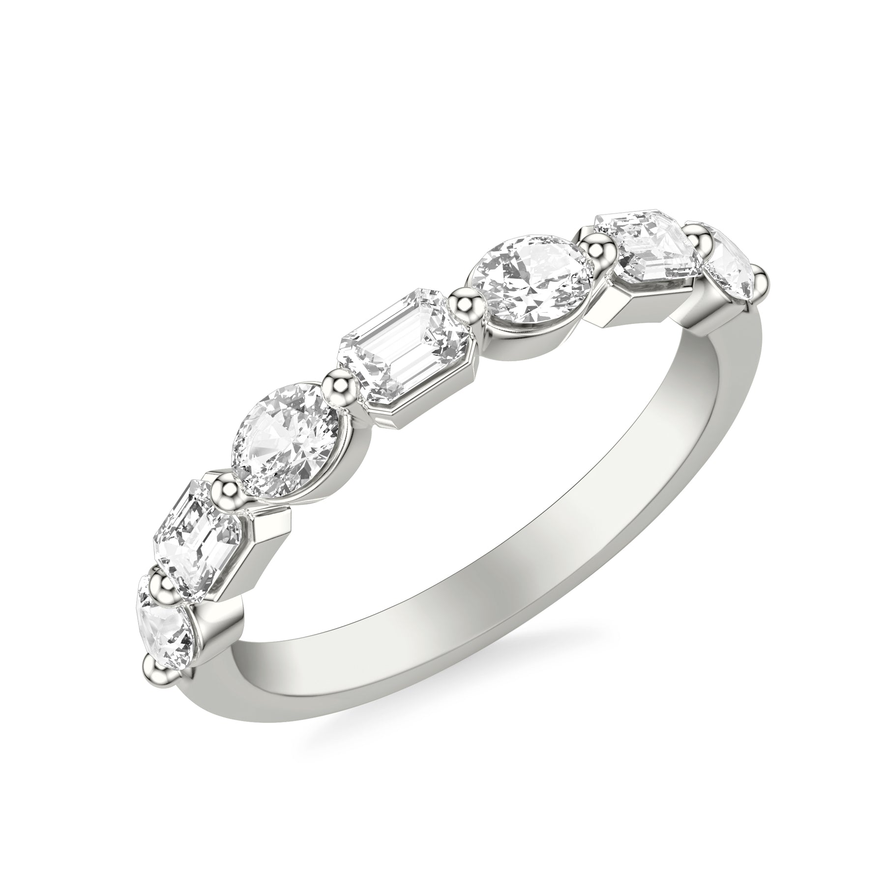 Contemporary Wedding Band with Mixed Fancy Oval and Emerald and Pear Diamonds
