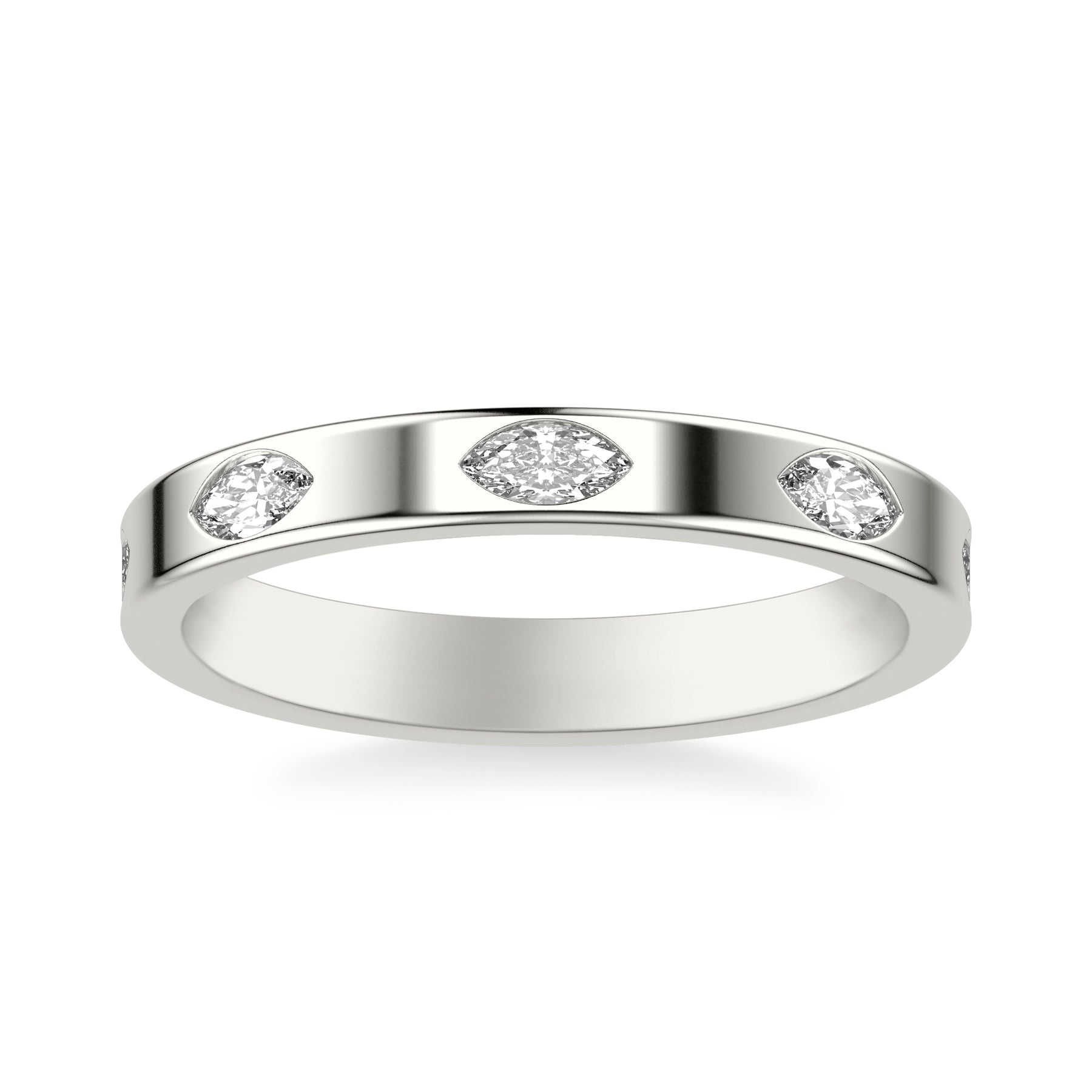 Contemporary Wide Wedding Band with Bezel Set Distance Marquise Diamond Polished Band