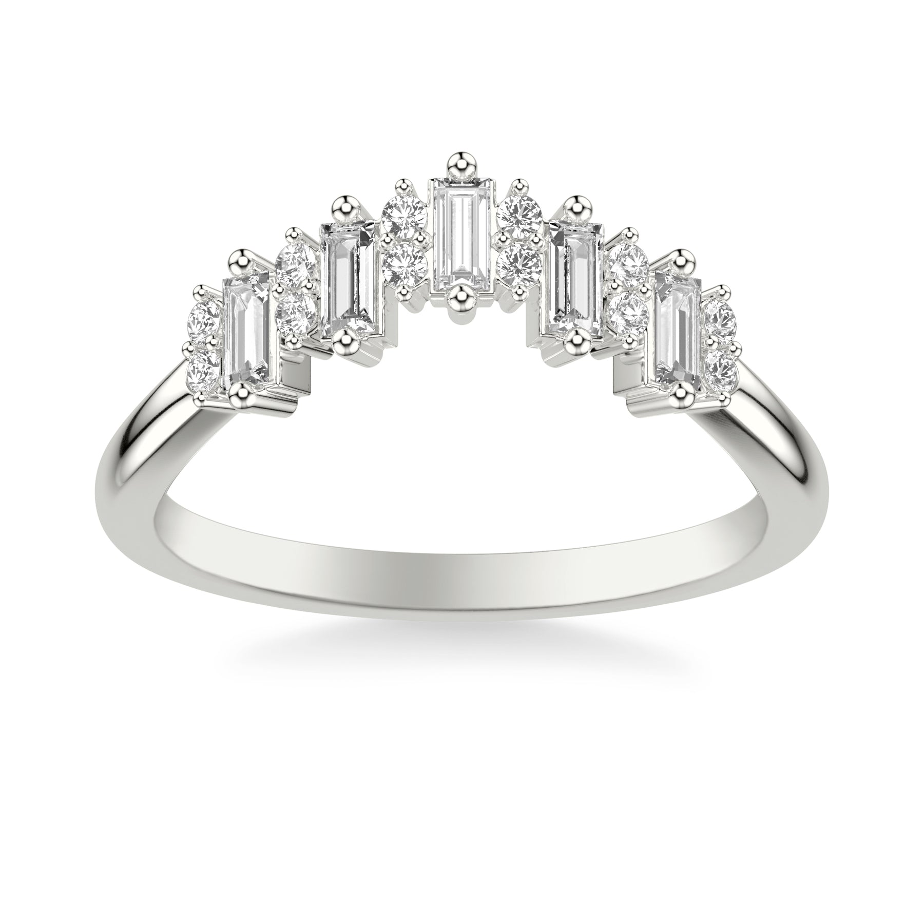 Contemporary Curved Wedding Band with Baguette and Round Diamonds