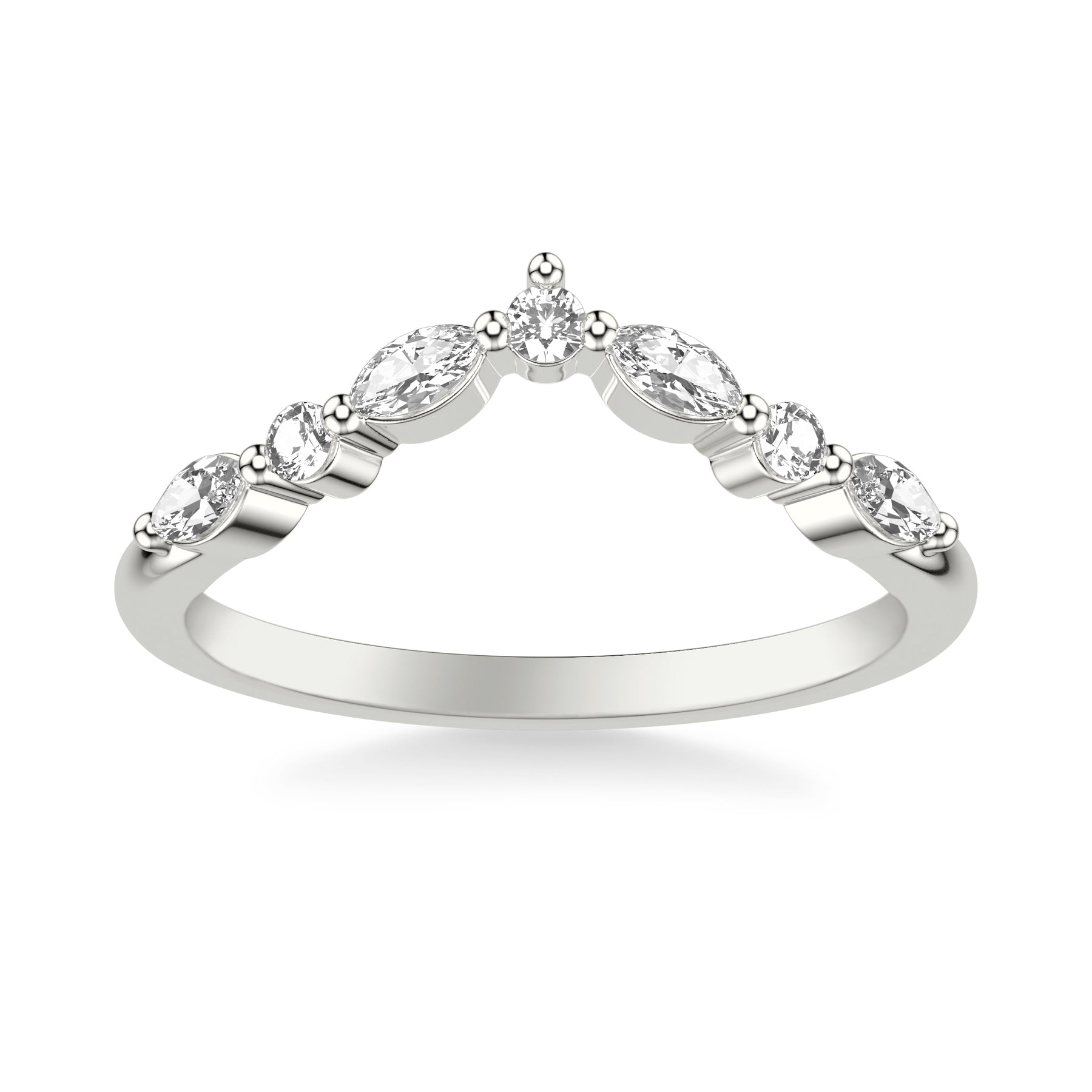 Contemporary Curved Wedding Band with Round and Marquise Diamonds