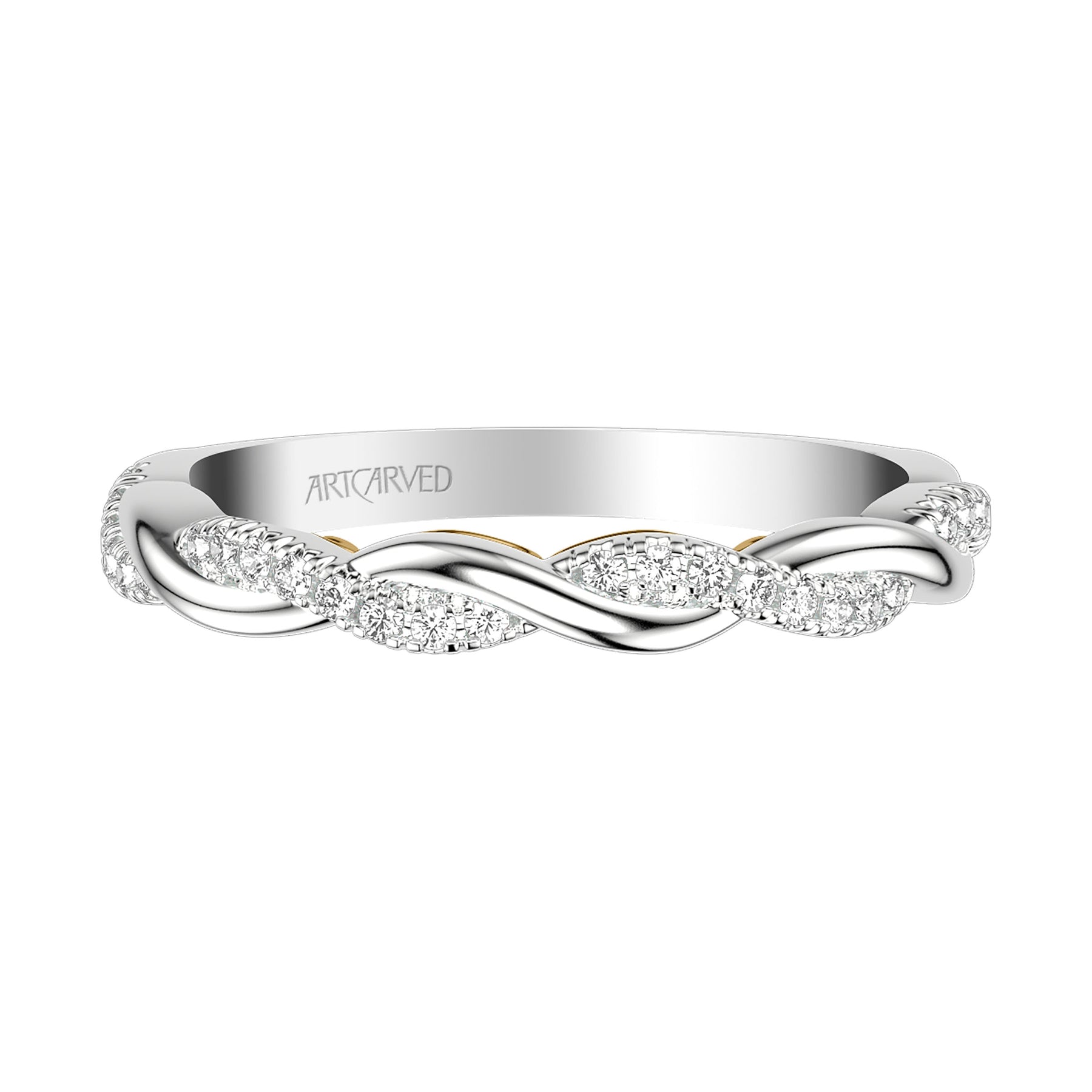 Lyric Twist Wedding Band with Diamond and Polished Design with Inner Carved details