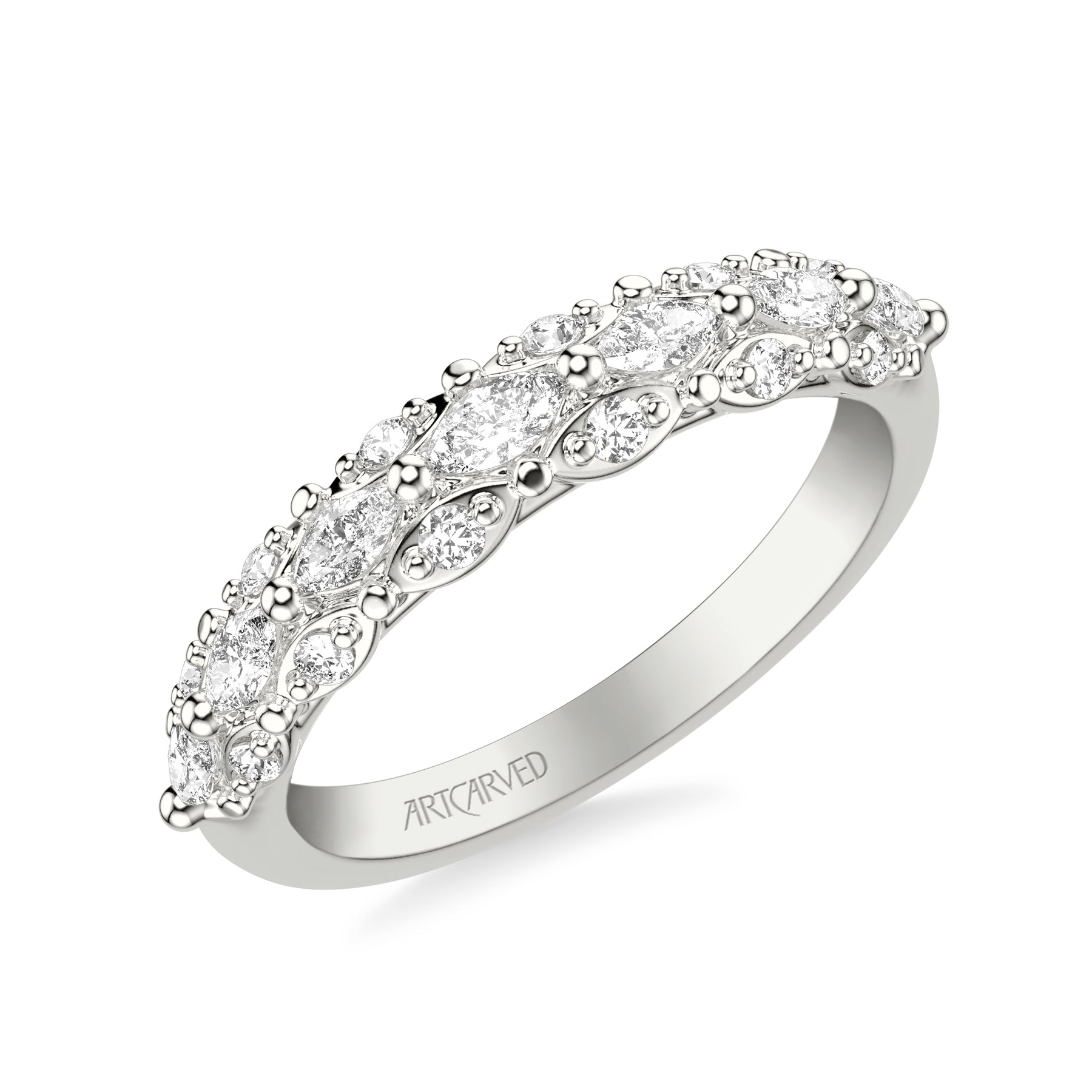 Classic Wedding Band with Triple Row Prong Set Round and Marquise Diamonds