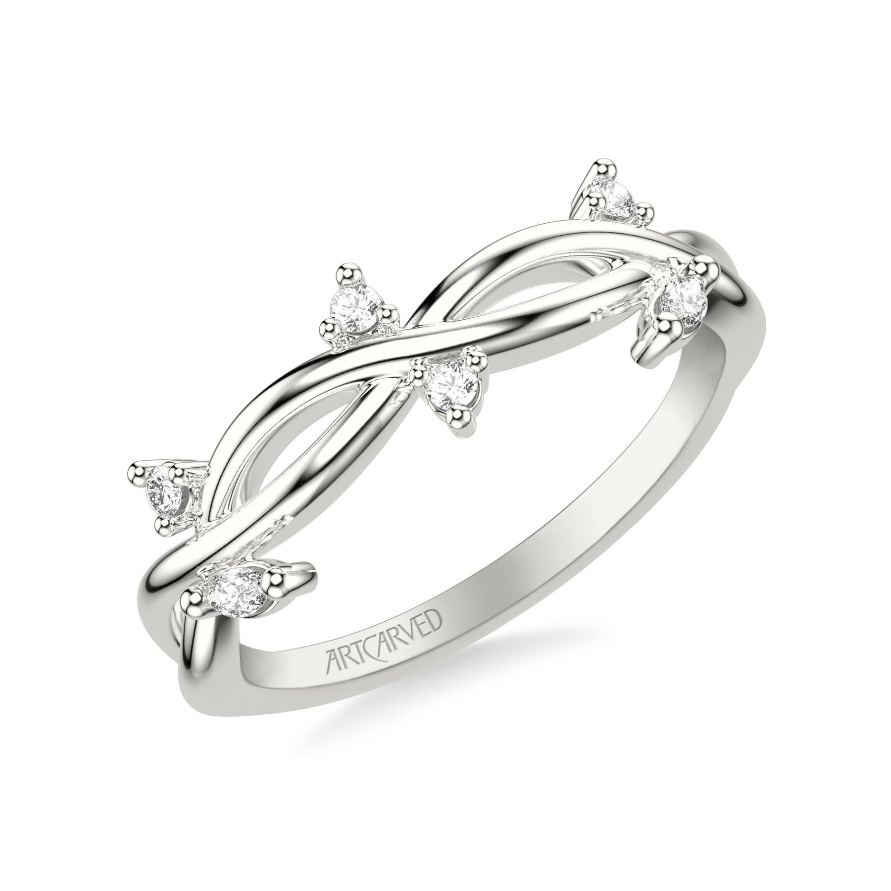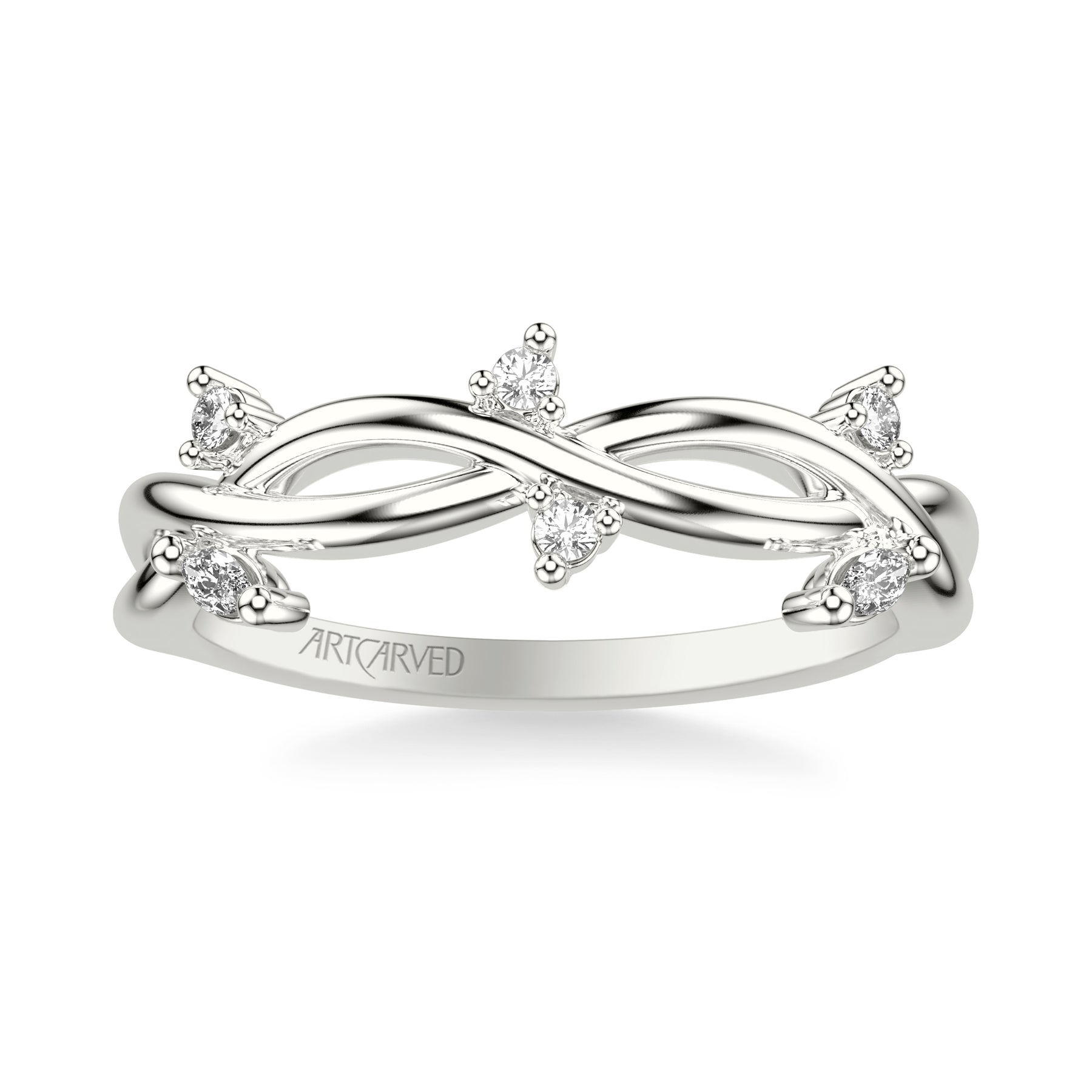 Floral Wedding Band with Floating Prong Set Marquise and Round Diamond Accents and Twisted Polished Shank
