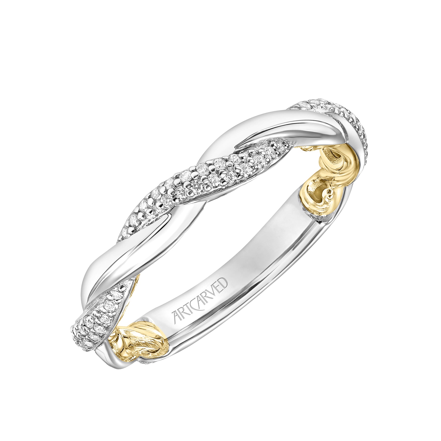 Lyric Twist Wedding Band with Diamond and Polished Design with Inner Carved details